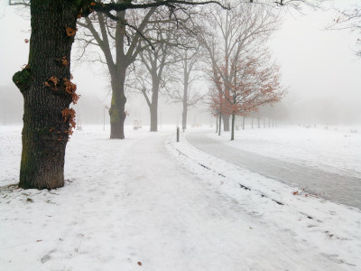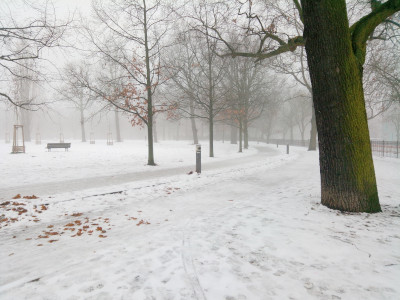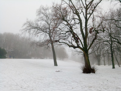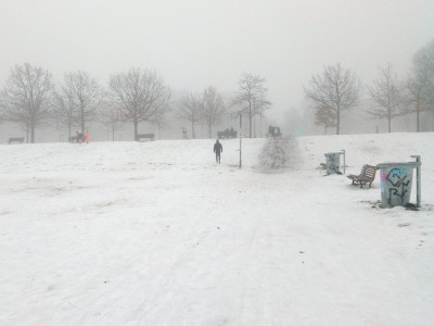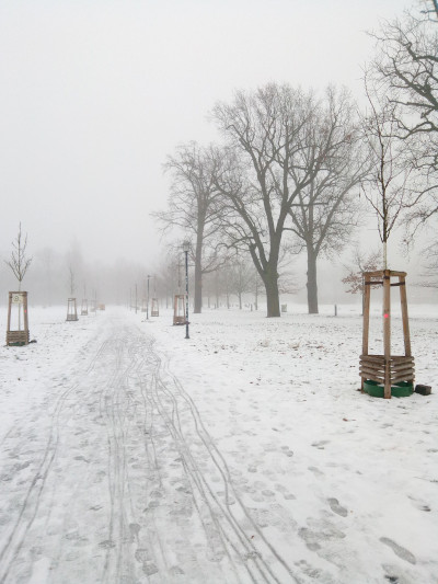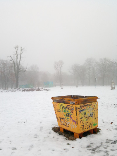 Es war zwar kein Wochenende, aber dafür nebelig, auch im Volkspark Friedrichshain.