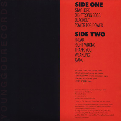 Zum Beispiel endlich diesen schönen Erstling von den Swans, der Krachmacherband um Michael Gira, die in den frühen Tagen von Sonic Youth mit diesen hin und wieder zusammen auf Tour durch die USA gefahren sind und in ihrem Wahn, immer noch lauter sein zu müssen, alle furchtbar verschreckt haben.